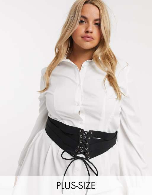 ASOS DESIGN Curve multi strap elastic corset waist belt in black Very well made.