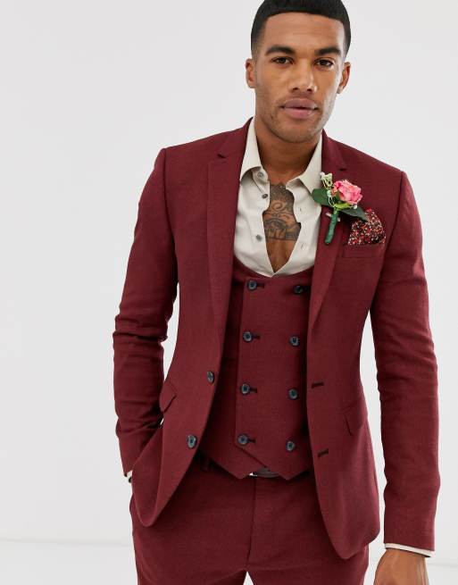 ASOS DESIGN wedding super skinny suit jacket in micro texture burgundy Very well made.