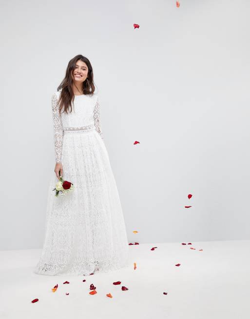 ASOS DESIGN Lace Long Sleeve Crop Top Maxi Wedding Dress Very well made.