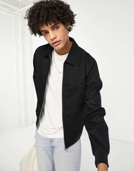 ASOS DESIGN harrington jacket with storm vent in black Very well made.