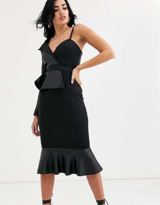 ASOS DESIGN one shoulder half pephem pencil midi dress in black Very well made.