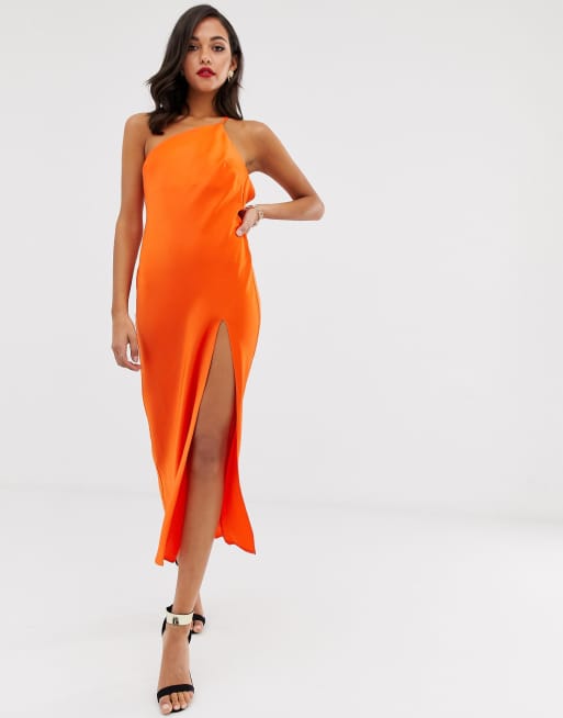 ASOS DESIGN one shoulder midaxi dress in satin with drape back Very well made.