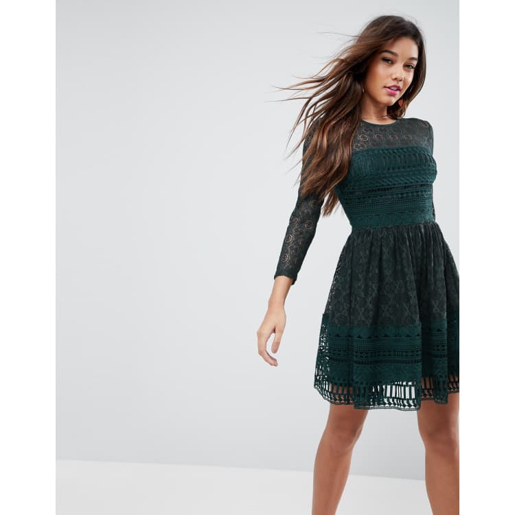 Buy ASOS DESIGN Premium Lace Mini Skater Dress with Long Sleeves Very well made.