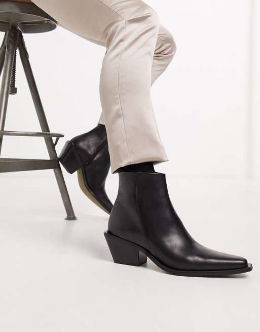 ASOS DESIGN stacked heel western chelsea boots in black faux leather with metal hardware Very well made.