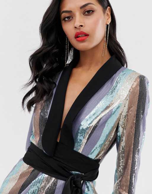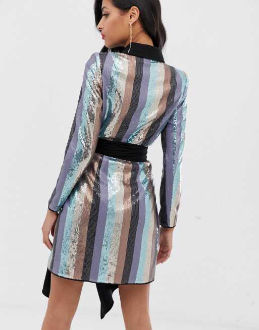 ASOS DESIGN tux mini dress in stripe sequin embellishment Very well made.