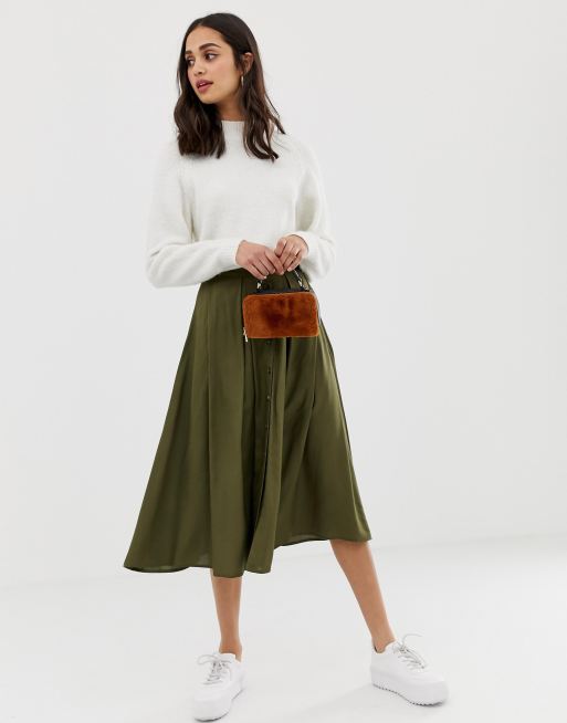 ASOS DESIGN button front floaty midi skirt with pleats Very well made.