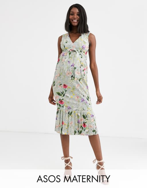 ASOS DESIGN Maternity floral belted pleated midi dress ASOS Very well made.