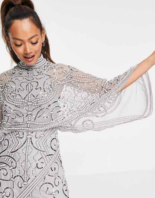 ASOS DESIGN pearl embellished mini dress in grey Very well made.