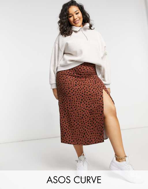 ASOS DESIGN Curve midi skirt with thigh split in tan and black non print Very well made.