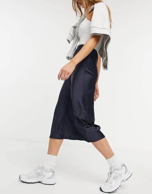 ASOS DESIGN satin bias midi skirt in navy Very well made.