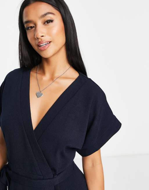 ASOS DESIGN Petite mini dress with wrap skirt in navy Very well made.