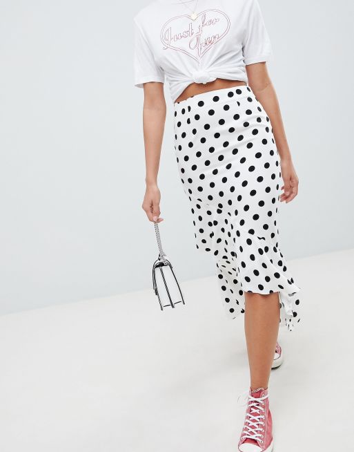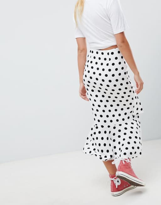 ASOS DESIGN midi skirt with ruffle detail in polka dot print ASOS Very well made.