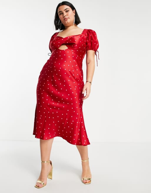 ASOS DESIGN Curve satin midi tea dress with twist front in spot print Very well made.