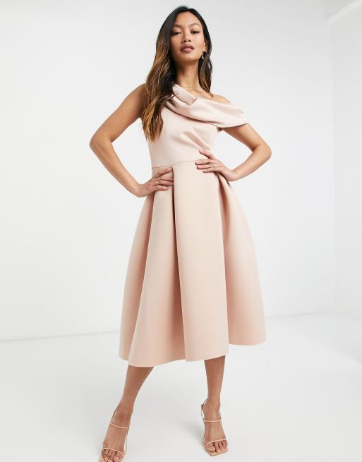 ASOS DESIGN fallen shoulder prom midi dress in rosedust Very well made.