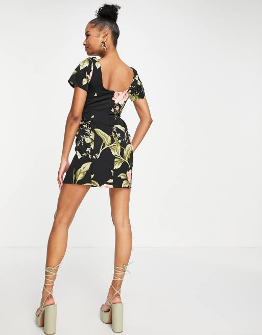 ASOS DESIGN Petite short sleeve mini dress with slit in floral print Very well made.