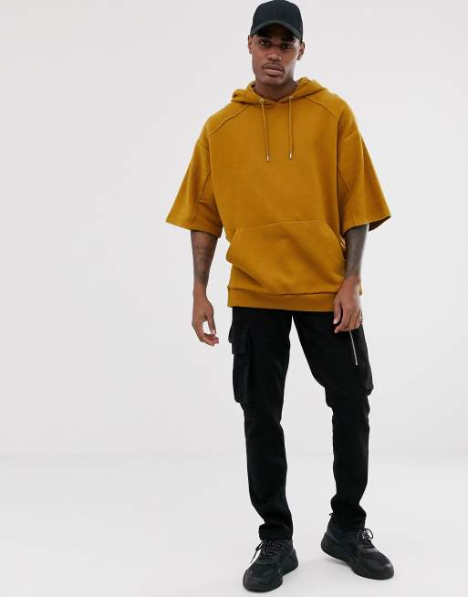 ASOS DESIGN oversized short sleeve hoodie with reverse brushback panels in tan Very well made.