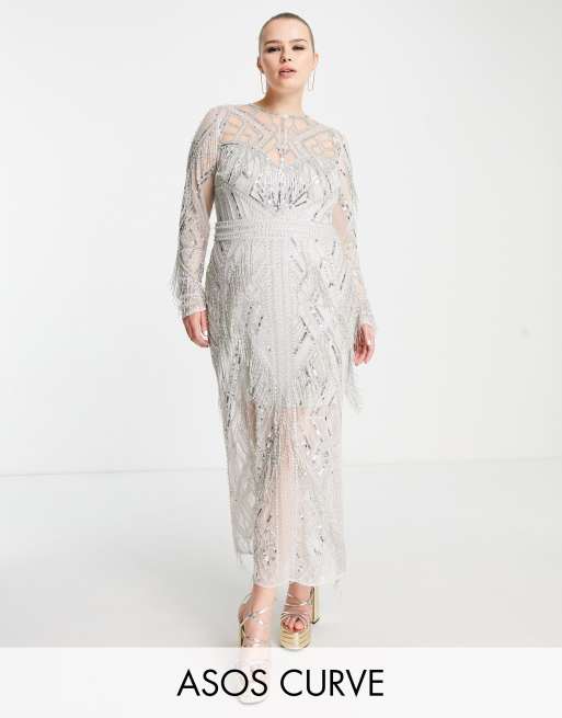 ASOS EDITION Curve cutwork fringe midi dress in silver Very well made.