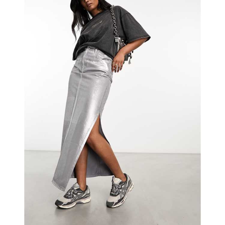 ASOS DESIGN denim maxi skirt with side split in silver Very well made.