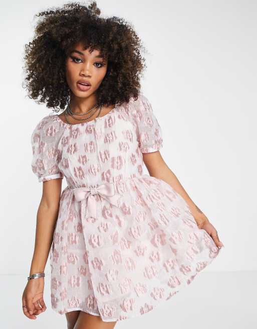 Sister Jane mini babydoll dress in pink floral jacquard with bow Very well made.