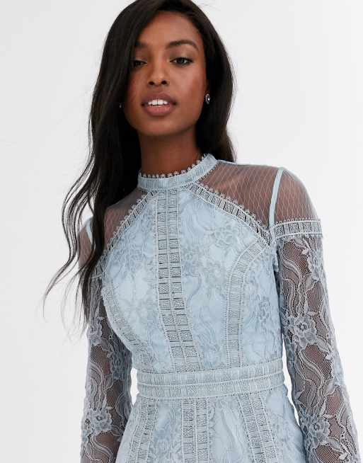 True Decadence Tall long sleeve contrast lace maxi dress in blue Very well made.