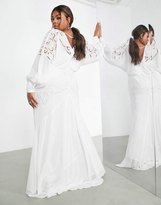 ASOS DESIGN Curve Ella blouson sleeve beaded cutwork wedding dress Very well made.