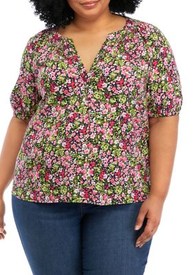 MICHAEL Michael Kors Plus Size Paisley Gathered Peasant Top Very well made.