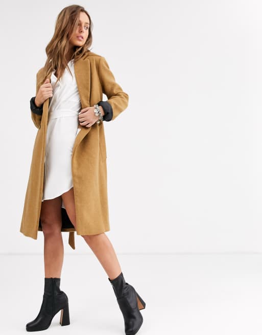 Bershka tie waist tailored coat in camel Size M eBay Very well made.