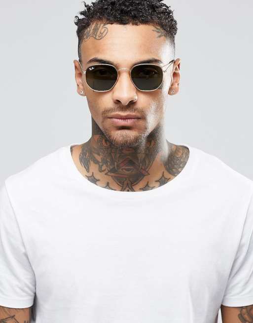 HEXAGONAL FLAT LENSES Sunglasses in Gold and Light Blue RB3548N Very well made.