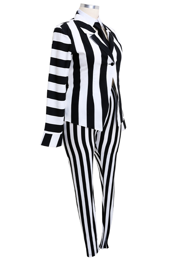 Black and White Vertical Stripes Jacket Female Suit Plus Size Very well made.